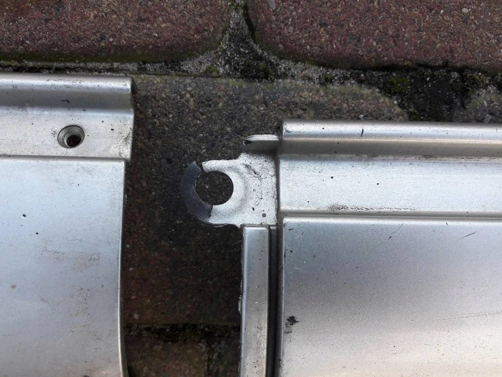 Listwa tylna z przetarciami i naderwanym uchwytem widocznymi na zdjęciach 7 i 8